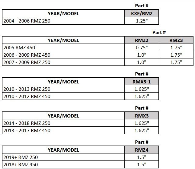 See chart below for fitment and rear lowering amounts, you will have to select the part number that fits your bike.